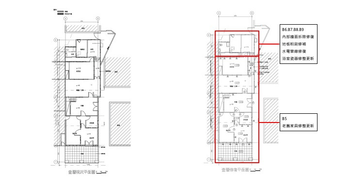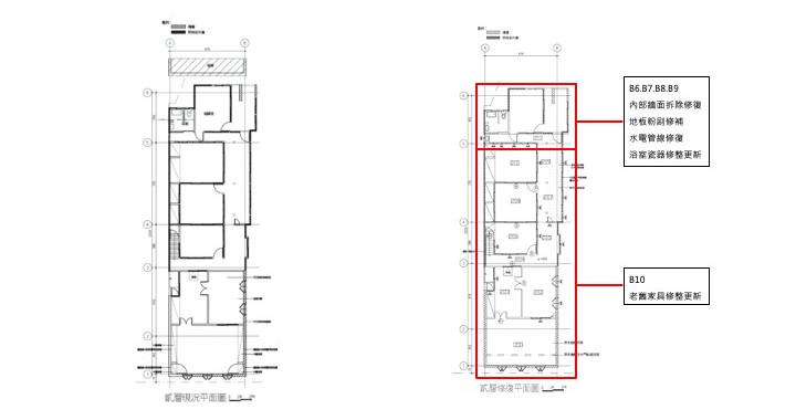 主體建築物結構為加強磚造,結構體及樓板為鋼筋混凝土構造,牆面為磚造厚度近30公分,整體結構大致完整,僅左後側局部須進行結構補強,