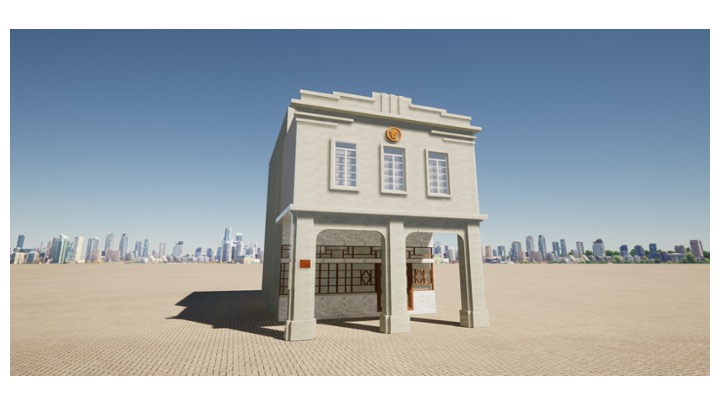 一樓騎樓柱線條簡單利落,僅於柱腳部分作簡單之基座處理,完全無其餘累贅之裝飾,騎樓面對中山路之開口及騎樓方向之開口以設計簡單之圓拱造型,增加部分之趣味。